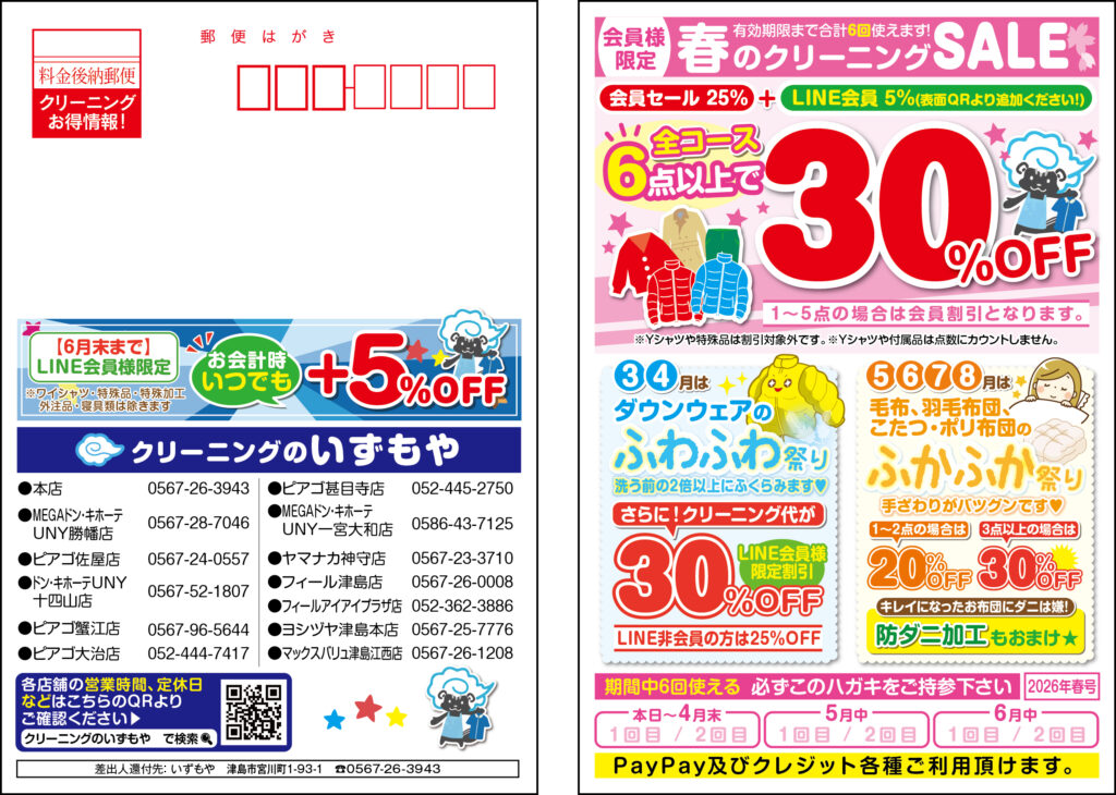 春のクリーニングセールのハガキをお配りしています!